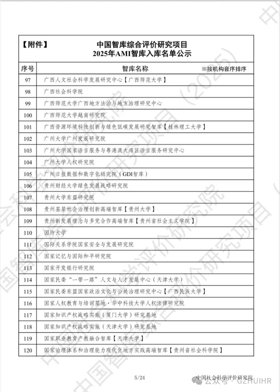 近日,中國社會科學評價研究院公示了“中國智庫綜合評價研究項目(2025)”智庫,廣州大學人權(quán)研究院成功躋身“2025年AMI智庫入庫名單”。