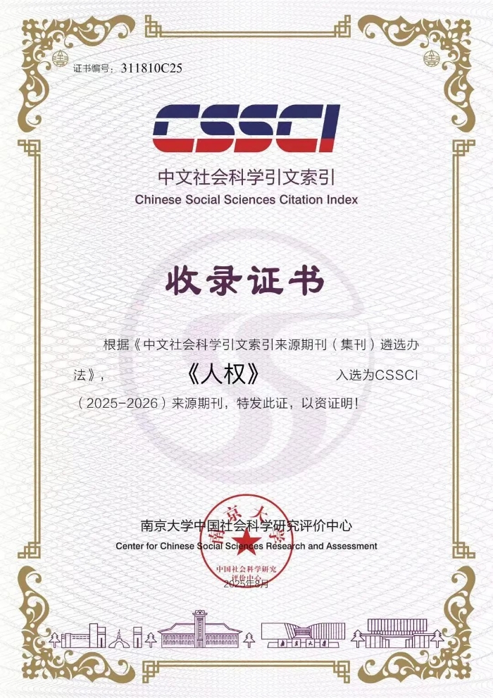 根據(jù)南京大學(xué)中國(guó)社會(huì)科學(xué)研究評(píng)價(jià)中心消息,《人權(quán)》雜志再次入選中國(guó)社會(huì)科學(xué)引文索引(CSSCI)來(lái)源期刊(2025-2026)。