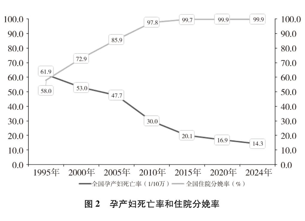 婦女健康水平大幅提高。2020年,婦女平均預(yù)期壽命已提高到80.9歲。2012年以來(lái),全國(guó)住院分娩率持續(xù)穩(wěn)定在99%以上,孕產(chǎn)婦系統(tǒng)管理率2024年達(dá)到94.9%,孕產(chǎn)婦死亡率從1995年的61.9/10萬(wàn)降至2024年的14.3/10萬(wàn),下降了76.9%,遠(yuǎn)低于世界平均水平。中國(guó)婦幼健康核心指標(biāo)(孕產(chǎn)婦死亡率、嬰兒死亡率、5歲以下兒童死亡率)位居全球中高收入國(guó)家前列,提前實(shí)現(xiàn)聯(lián)合國(guó)2030年可持續(xù)發(fā)展議程相關(guān)目標(biāo),被世界衛(wèi)生組織列為婦幼健康高績(jī)效的10個(gè)國(guó)家之一。