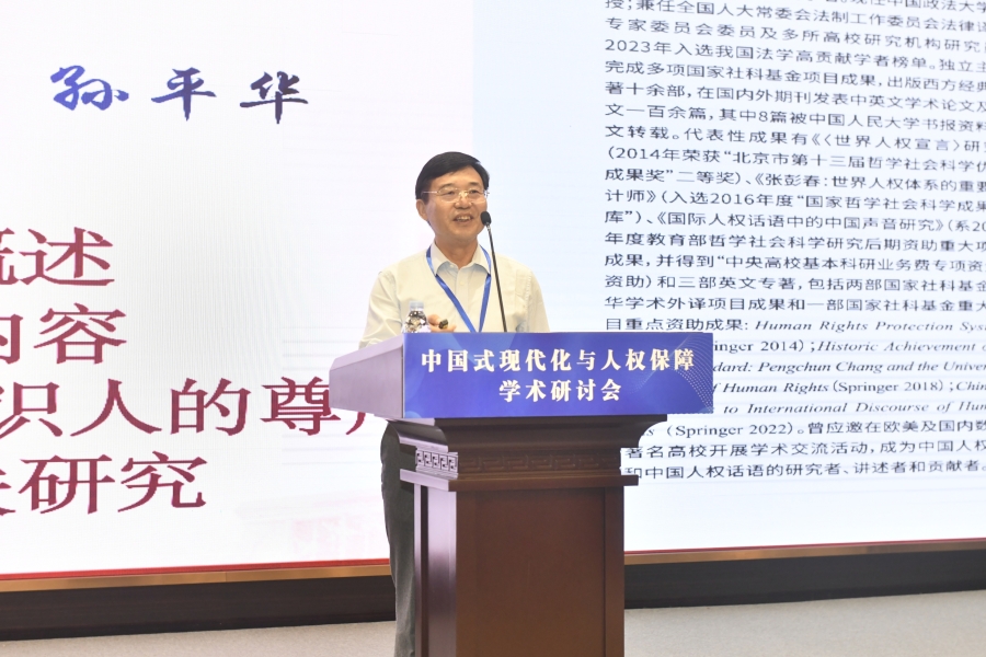 “中國(guó)式現(xiàn)代化與人權(quán)保障”學(xué)術(shù)研討會(huì)16日在山東濟(jì)南舉行。圖為中國(guó)政法大學(xué)外國(guó)語(yǔ)學(xué)院教授孫平華在“平行論壇(一)上半場(chǎng):中國(guó)式現(xiàn)代化進(jìn)程中的人權(quán)理論創(chuàng)新”作題為《論人的尊嚴(yán)的中國(guó)觀》的發(fā)言。主辦方供圖