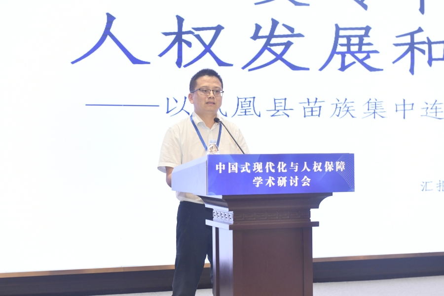 “中國(guó)式現(xiàn)代化與人權(quán)保障”學(xué)術(shù)研討會(huì)16日在山東濟(jì)南舉行。圖為鳳凰開(kāi)放大學(xué)校長(zhǎng)葛健在“平行論壇(一)上半場(chǎng):中國(guó)式現(xiàn)代化進(jìn)程中的人權(quán)理論創(chuàng)新”作題為《少數(shù)民族人權(quán)事業(yè)發(fā)展的實(shí)踐路徑——以鳳凰縣苗族人口為例》的發(fā)言。主辦方供圖