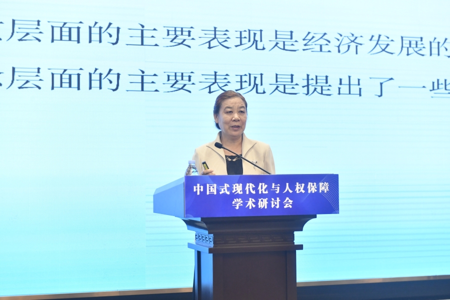 “中國(guó)式現(xiàn)代化與人權(quán)保障”學(xué)術(shù)研討會(huì)16日在山東濟(jì)南舉行。圖為北京大學(xué)國(guó)際關(guān)系學(xué)院教授羅艷華作題為《中國(guó)式現(xiàn)代化的本質(zhì)特征及對(duì)全球人權(quán)治理的理念引領(lǐng)》的大會(huì)發(fā)言。主辦方供圖