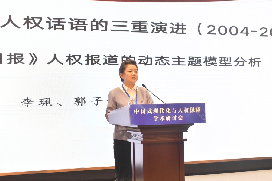 “中國(guó)式現(xiàn)代化與人權(quán)保障”學(xué)術(shù)研討會(huì)16日在山東濟(jì)南舉行。圖為西南政法大學(xué)新聞傳播學(xué)院教授李珮作題為《憲法化到現(xiàn)代化:中國(guó)人權(quán)話語(yǔ)的三重演進(jìn)(2004 -2024)》的大會(huì)發(fā)言。主辦方供圖
