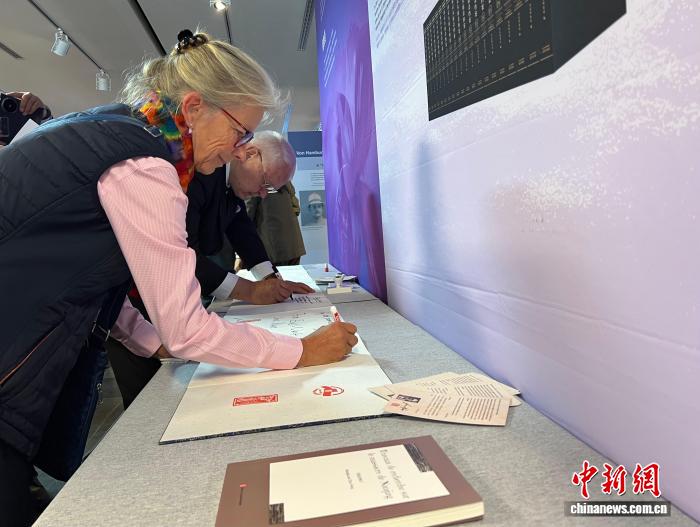 當?shù)貢r間9月29日,“世界記憶 和平愿景——約翰·拉貝等德國人士見證的南京大屠殺”主題展覽在柏林中國文化中心開幕。圖為觀眾觀展后留言。中新社記者 馬秀秀 攝