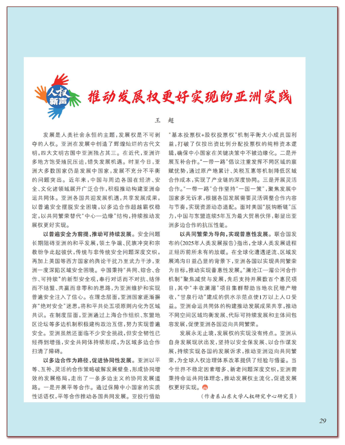 推動發(fā)展權(quán)更好實現(xiàn)的亞洲實踐
