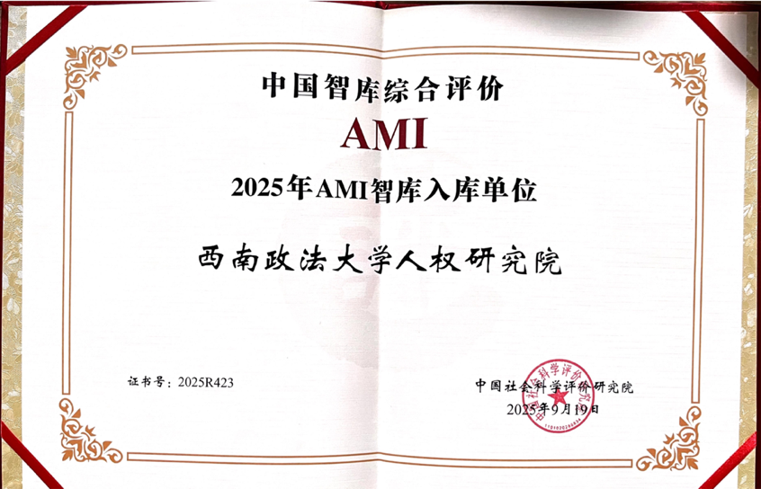 此外,西南政法大學(xué)人權(quán)研究院還在本次評(píng)選中入選“2025年AMI智庫(kù)入庫(kù)單位”,是該院在中國(guó)特色新型智庫(kù)建設(shè)方面再次獲得的權(quán)威認(rèn)可。