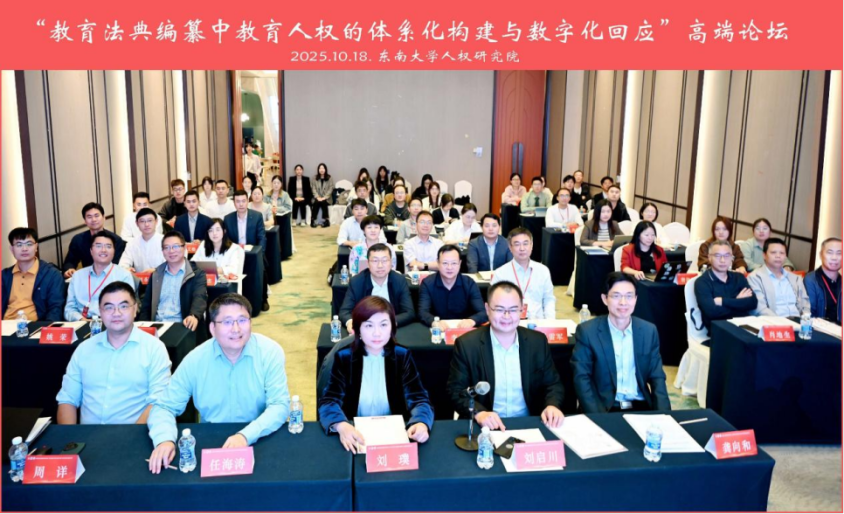 2025年10月18日,由東南大學(xué)人權(quán)研究院、東南大學(xué)法學(xué)院主辦,教育部教育立法研究基地(東南大學(xué))、江蘇省法學(xué)會教育法學(xué)研究會、江蘇金智科技股份有限公司協(xié)辦的“教育法典編纂中教育人權(quán)的體系化構(gòu)建與數(shù)字化回應(yīng)”高端論壇在南京隆重召開。