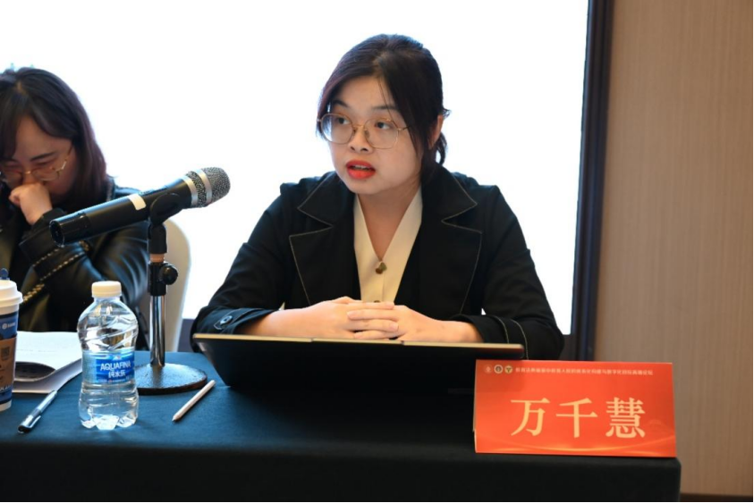 東南大學(xué)法學(xué)院博士生王霞作題為《數(shù)智時代背景下教育法典原則整合——從受教育權(quán)價值體系困境切入》的報告。她指出,數(shù)字技術(shù)為教育數(shù)字化提供了不竭動力的同時,也引發(fā)了價值體系的內(nèi)在侵蝕性危機。算法偏見、信息繭房、質(zhì)量偏差等問題,不斷沖擊著受教育權(quán)的價值體系?;谑芙逃龣?quán)價值體系的矛盾,有必要運用數(shù)字化轉(zhuǎn)型的正義法理念,實現(xiàn)教育法典原則之價值錨定。