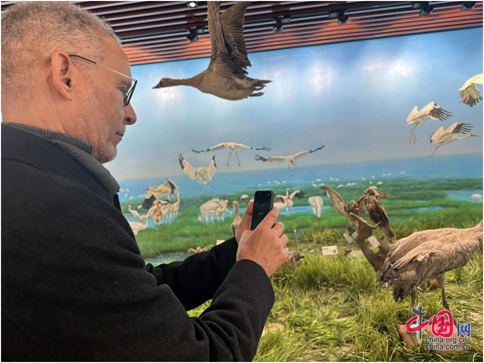 圖為嘉賓考察鄱陽湖濕地和候鳥宣傳教育中心。中國網(wǎng) 焦夢/攝