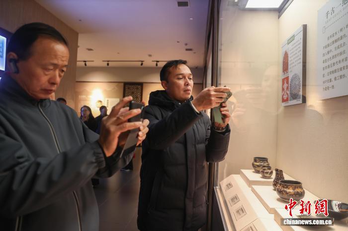 圖為中外嘉賓在中國(guó)吉州窯博物館內(nèi)參觀(guān)展出的各類(lèi)木葉紋盞。中新社記者 劉力鑫 攝