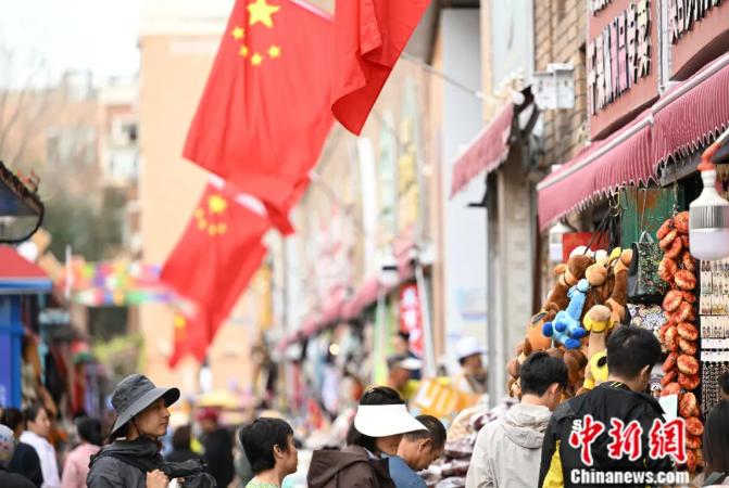 2025年9月23日,游客在新疆烏魯木齊市大巴扎步行街游覽、購(gòu)物。中新社記者 田雨昊 攝