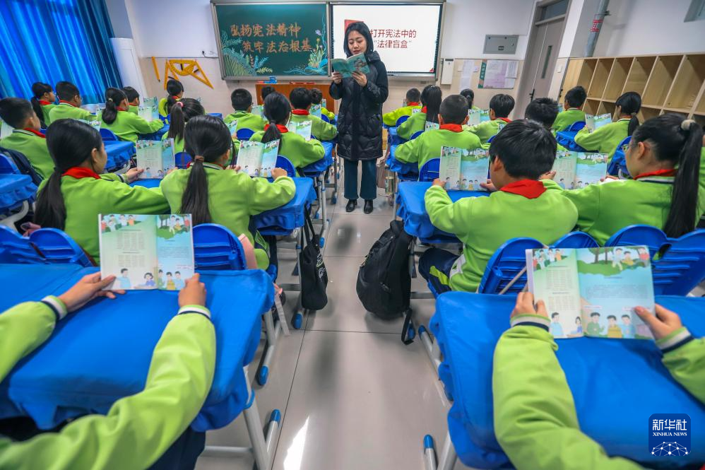 12月2日,在河北省邢臺(tái)市內(nèi)丘縣朝陽(yáng)小學(xué),內(nèi)丘縣人民檢察院檢察干警為學(xué)生講解憲法知識(shí)。新華社發(fā)(劉繼東攝)