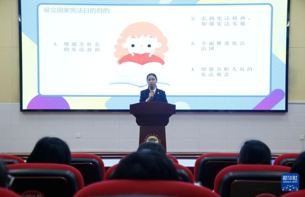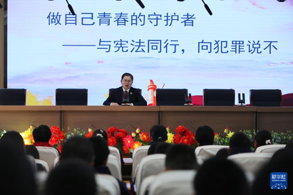 12月2日,甘肅省定西市安定區(qū)人民檢察院的檢察官在中華路學(xué)校進(jìn)行憲法相關(guān)知識(shí)宣講。新華社發(fā)(王克賢攝)