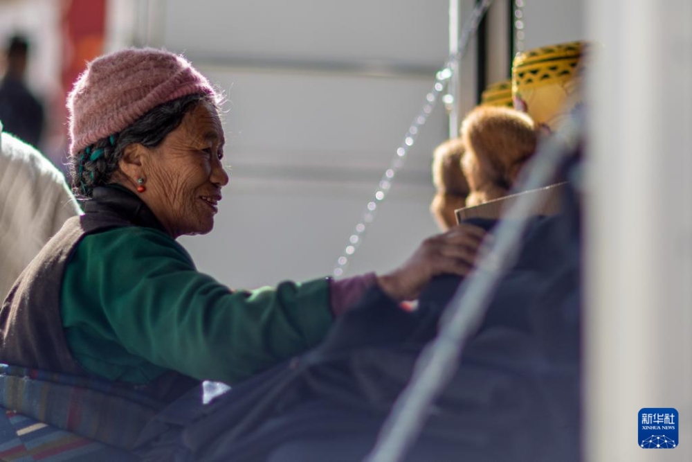 1月5日,森嘎村村民在集市上挑選服飾。新華社記者 姜帆 攝