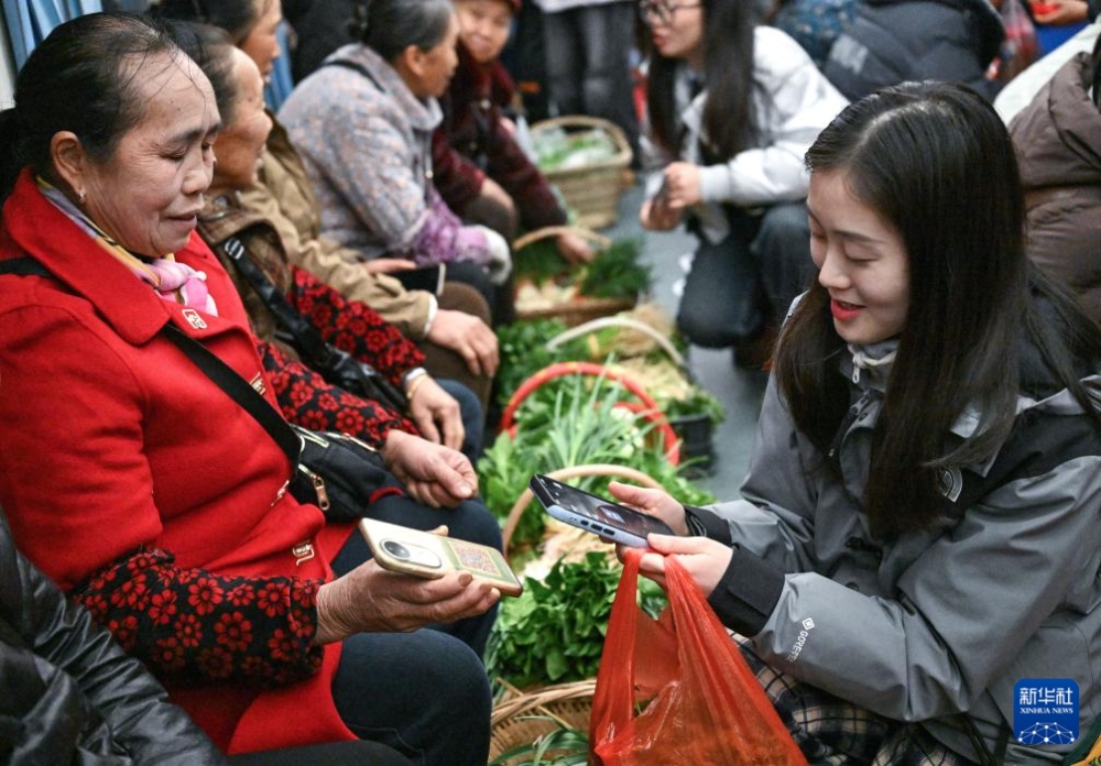 2月8日,村民在5640次“慢火車”上售賣自家種植的蔬菜。新華社記者 楊文斌 攝