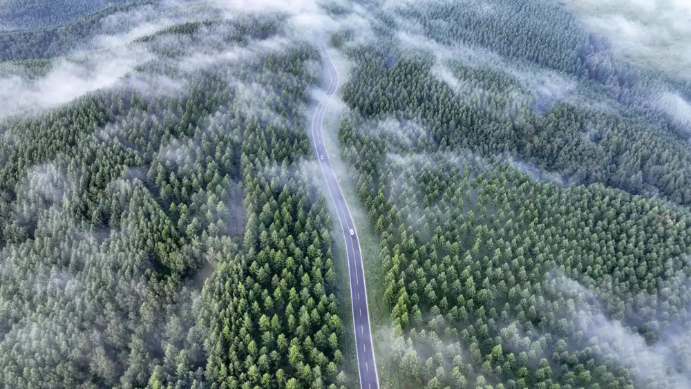 2024年7月26日拍攝的塞罕壩國家級(jí)自然保護(hù)區(qū)景色(無人機(jī)照片)。夏日清晨,位于河北省承德市的塞罕壩國家級(jí)自然保護(hù)區(qū)滿目青翠,浩瀚林海壯美如畫。新華社發(fā)(王立群 攝)