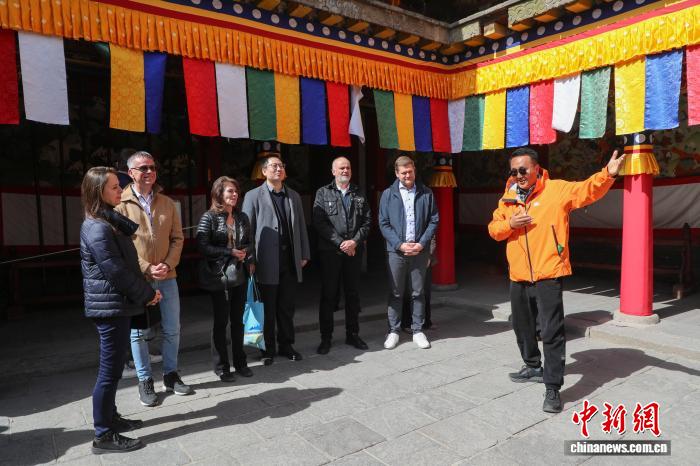 4月5日,青海西寧,奧地利中國友好協(xié)會高級代表團一行先后前往藏傳佛教圣地塔爾寺和青海省藏醫(yī)院感知青海藏文化。圖為代表團成員參觀塔爾寺。中新社記者 馬銘言 攝