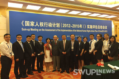 當日,西南政法大學校長、人權研究院院長付子堂教授,人權研究院副院長孟慶濤副教授、培訓部主任趙樹坤教授應邀參加了由國務院新聞辦公室、外交部牽頭并由中央和國家機關有關部門、人民團體、社會組織等50個單位組成的國家人權行動計劃聯(lián)席會議機制,在北京人民大會堂召開的《國家人權行動計劃(2012-2015年)》實施評估總結會議。