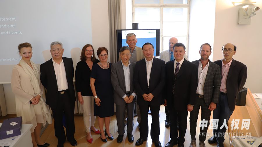 圖為中國人權(quán)研究會代表和薩爾斯堡大學(xué)學(xué)者、奧中友好協(xié)會代表合影。(攝影 賈璞玉)