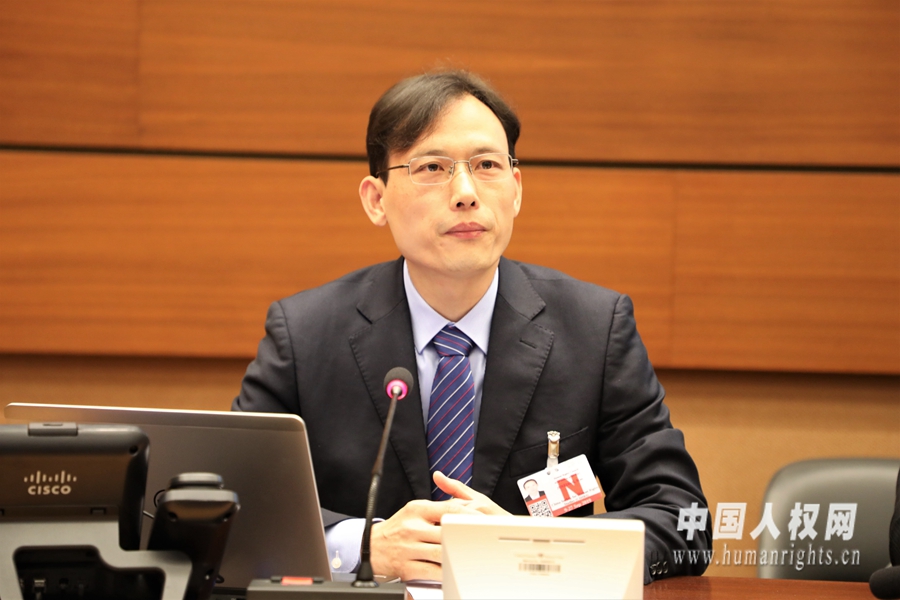 9月9日,中國(guó)人權(quán)研究會(huì)在日內(nèi)瓦萬(wàn)國(guó)宮舉辦“新中國(guó)人權(quán)事業(yè)發(fā)展70年”主題邊會(huì),南開(kāi)大學(xué)人權(quán)研究中心主任常健在會(huì)上發(fā)言。攝影:石冬冬 南開(kāi)大學(xué)人權(quán)研究中心主任常健在會(huì)上介紹了具有中國(guó)特色的“發(fā)展主義”的人權(quán)道路。他表示,新中國(guó)成立70年來(lái),經(jīng)過(guò)不斷探索,吸取經(jīng)驗(yàn)教訓(xùn),走出了以發(fā)展促人權(quán)、實(shí)現(xiàn)人的全面發(fā)展的成功道路。中國(guó)不僅將“國(guó)家尊重和保障人權(quán)”寫(xiě)入憲法,而且制定了三期國(guó)家人權(quán)行動(dòng)計(jì)劃,將經(jīng)濟(jì)、政治、社會(huì)和文化發(fā)展與人權(quán)發(fā)展結(jié)合起來(lái),并采取了一系列相應(yīng)的政策措施。從實(shí)踐結(jié)果來(lái)看,中國(guó)經(jīng)濟(jì)、政治、社會(huì)和文化的發(fā)展與人權(quán)保障水平的提升呈現(xiàn)出同步性。