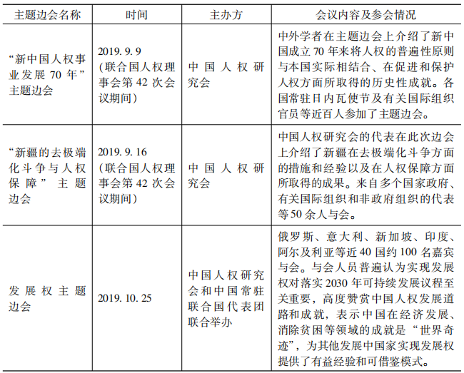 表8 2017-2019年中國人權社會組織在聯(lián)合國萬國宮舉辦人權主題邊會情況