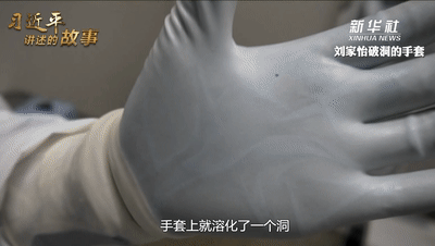 看似簡單的工作,卻時刻面臨著危險。穿著防護服,劉家怡常感覺又冷又悶。有一次呼吸困難,她不得不扶著墻走出門透氣。脫下防護服時,她發(fā)現因為缺氧,胳膊都變色了。還有一次她因為手部消毒太過頻繁,導致手套上破了一個洞。