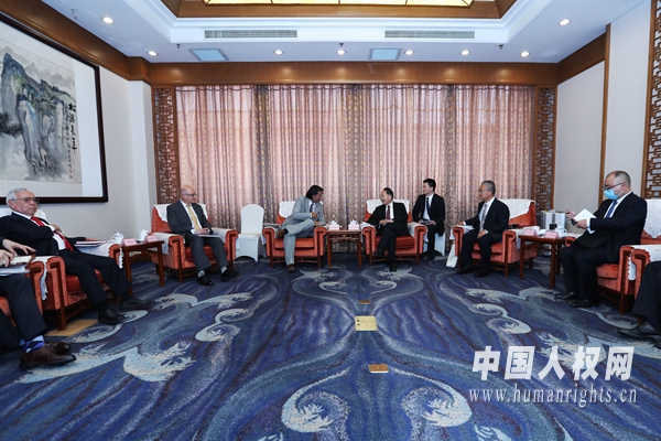 中國人權(quán)研究會副秘書長李曉軍、中國人權(quán)研究會秘書處處長齊明杰、外交部國際司副處長邱從洋,以及墨西哥駐華大使館副館長、公使埃斯卡米拉等陪同會見。