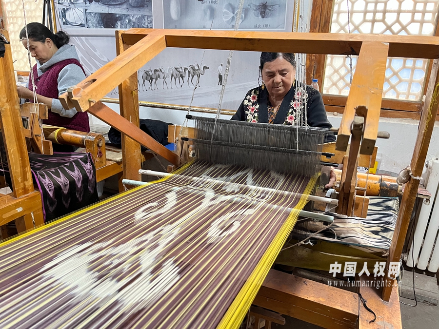 和田市吉亞鄉(xiāng)作為其發(fā)源地,被譽為“艾德萊斯絲綢之鄉(xiāng)”。近年來,吉亞鄉(xiāng)不斷探索非物質(zhì)文化遺產(chǎn)的產(chǎn)業(yè)化開發(fā)工作,采用“合作社+農(nóng)戶”的模式,積極發(fā)展桑蠶產(chǎn)業(yè)、紡織產(chǎn)業(yè)、旅游產(chǎn)業(yè),輻射帶動轄區(qū)群眾增收致富,實現(xiàn)經(jīng)濟效益、社會效益協(xié)同發(fā)展、相輔相成的良性循環(huán)。