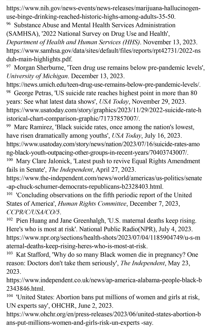 美國婦女兒童權(quán)利長期遭受系統(tǒng)性侵犯,保障性別平等的憲法規(guī)定付之闕如,至今未批準聯(lián)合國《消除對婦女一切形式歧視公約》,而且是聯(lián)合國會員國中唯一沒有批準《兒童權(quán)利公約》的國家。美國參議院2023年4月否決了保障性別平等的憲法修正提案。美國每年約有5.4萬名婦女因遭受懷孕歧視而失業(yè)。超過220萬育齡婦女無法獲得產(chǎn)科護理。至少有21個州明令禁止或嚴格限制墮胎。孕產(chǎn)婦死亡人數(shù)近20年來增加了一倍多。職場、校園、家庭等多領域的性暴力層出不窮。兒童的生存權(quán)與發(fā)展權(quán)堪憂。大量兒童被排除出醫(yī)療補助計劃。槍支暴力成為兒童死亡的主要原因。毒品濫用在青少年群體中蔓延。46個州被發(fā)現(xiàn)瞞報約3.48萬例寄養(yǎng)兒童失蹤案件。