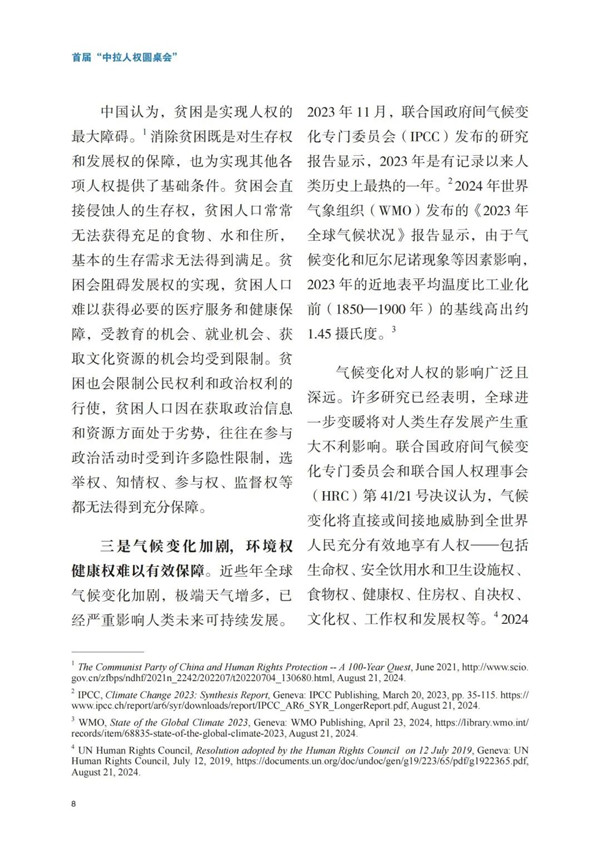 隨后,中國(guó)人民大學(xué)重陽(yáng)金融研究院院長(zhǎng)、教授王文發(fā)布由中國(guó)人權(quán)研究會(huì)、中國(guó)人民大學(xué)重陽(yáng)金融研究院、巴西弗魯米嫩塞聯(lián)邦大學(xué)法學(xué)院聯(lián)合發(fā)布的《共同目標(biāo):中拉人權(quán)發(fā)展合作的現(xiàn)狀與未來(lái)》(點(diǎn)擊藍(lán)色字體可下載報(bào)告中文全文)中、英、葡等多語(yǔ)種智庫(kù)研究報(bào)告。報(bào)告顯示,中拉人權(quán)交流與合作已讓雙方凝聚多項(xiàng)共識(shí),中拉認(rèn)同各國(guó)應(yīng)走適合本國(guó)國(guó)情的人權(quán)發(fā)展道路、認(rèn)為缺乏生存權(quán)和發(fā)展權(quán)就難以順利實(shí)現(xiàn)其他人權(quán)、明確“全球南方”國(guó)家需攜手合作在全球人權(quán)治理中發(fā)揮重要作用。報(bào)告建議,未來(lái)中拉人權(quán)發(fā)展合作應(yīng)著眼于三個(gè)方面:一是加強(qiáng)人權(quán)交流互鑒,形成更多人權(quán)共識(shí);二是反對(duì)人權(quán)問(wèn)題工具化,推動(dòng)全球人權(quán)治理更加公平公正合理包容;三是始終秉持“以發(fā)展促人權(quán)”的核心理念,攜手發(fā)展促進(jìn)人權(quán)進(jìn)步,成為“全球南方”人權(quán)發(fā)展合作樣板。