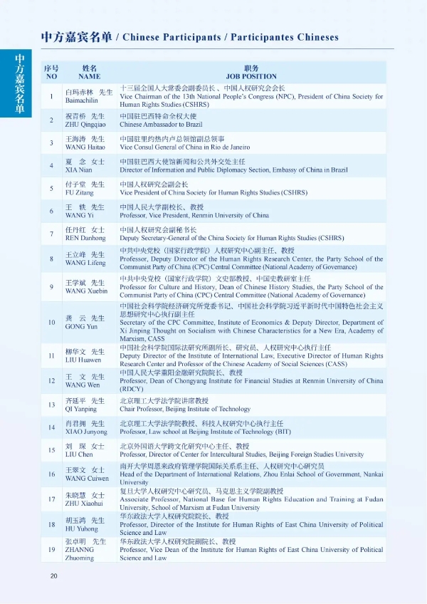 編者按:當(dāng)?shù)貢r(shí)間2024年9月10日,由中國(guó)人權(quán)研究會(huì)、中國(guó)人民大學(xué)、巴西弗魯米嫩塞聯(lián)邦大學(xué)共同主辦,中國(guó)人民大學(xué)重陽(yáng)金融研究院、巴西弗魯米嫩塞聯(lián)邦大學(xué)法學(xué)院共同承辦的首屆中拉人權(quán)圓桌會(huì)在巴西里約熱內(nèi)盧成功舉辦。這是中國(guó)與拉丁美洲及加勒比地區(qū)首次開(kāi)展人權(quán)領(lǐng)域機(jī)制性交流研討活動(dòng)。17個(gè)國(guó)家人權(quán)領(lǐng)域的高級(jí)官員、專(zhuān)家學(xué)者及有關(guān)社會(huì)組織、智庫(kù)、媒體代表等120余人參加會(huì)議,人民日?qǐng)?bào)、新華社等30余家中外媒體報(bào)道此次會(huì)議。