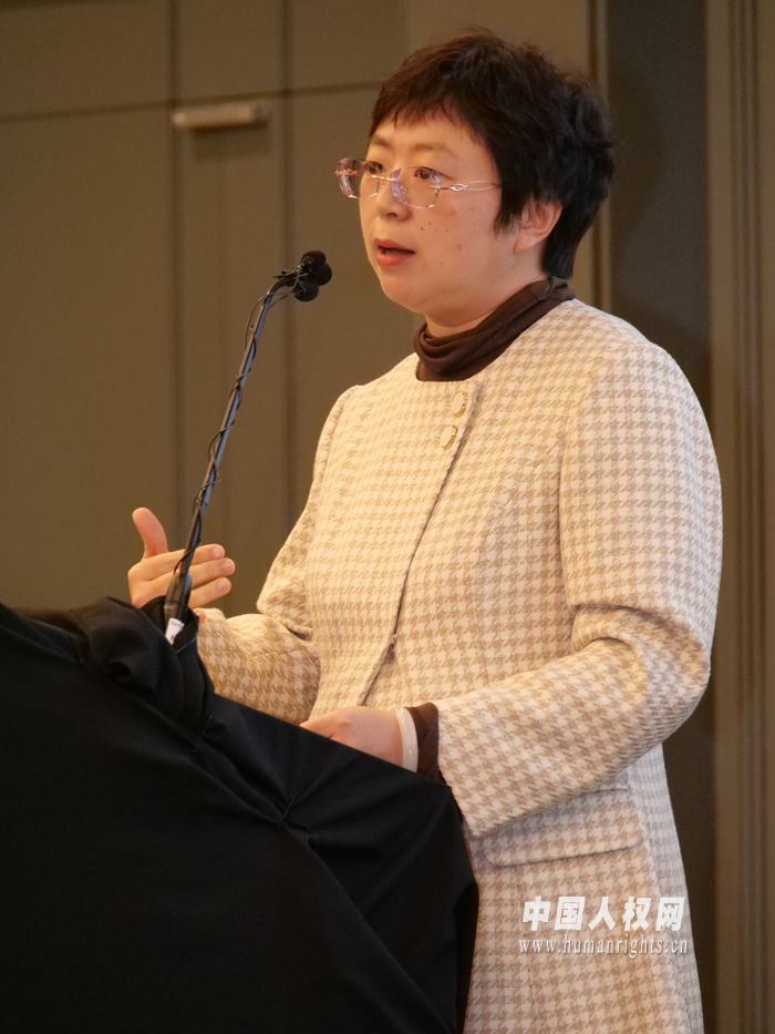 保加利亞科學(xué)院國家與法律研究所、現(xiàn)代中國研究中心教授瑪麗安娜·田作題為《中國保障公民社會(huì)經(jīng)濟(jì)權(quán)利的政策 (良好實(shí)踐)》的主旨發(fā)言。