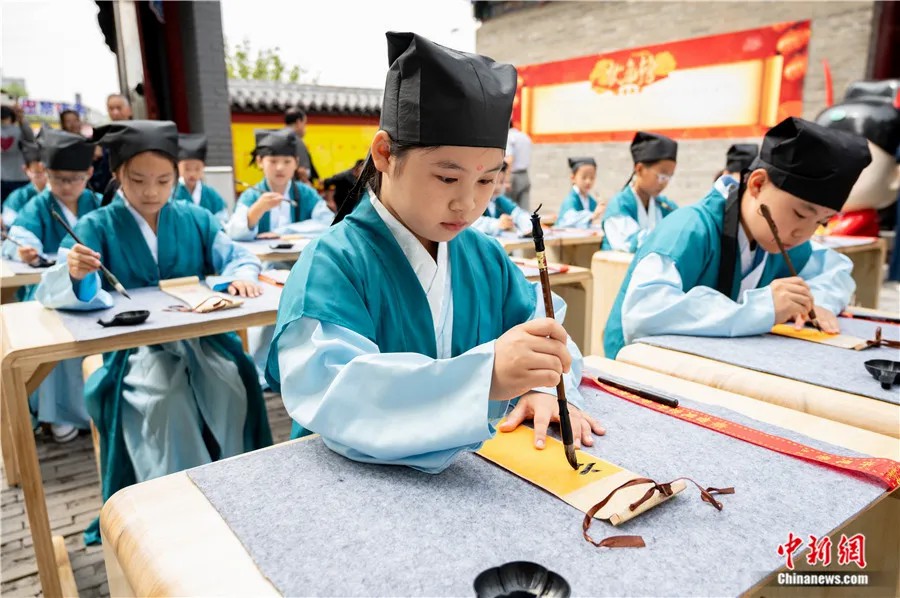 2024年9月13日,“古韻啟智 禮潤童心”——唱經(jīng)樓文化激勵活動暨開筆禮儀式在山西太原唱經(jīng)樓舉行。中新社記者 韋亮 攝