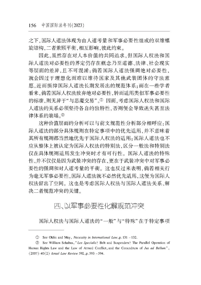 【關(guān)鍵詞】國際人權(quán)法;國際人道法;規(guī)范沖突;特別法優(yōu)于一般法;軍事必要性