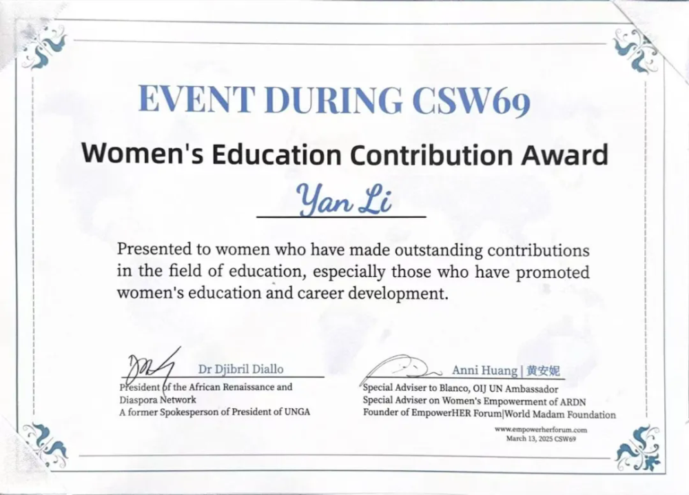 李燕副校長獲大會“世界女性教育貢獻獎”