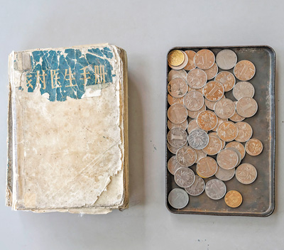 吳光潮翻閱了幾十年的《農(nóng)村醫(yī)生手冊(cè)》和收取診療費(fèi)的鐵皮盒。
