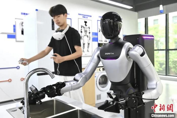 2022年11月9日,山東濟(jì)南,機(jī)器人亮相2022全國(guó)中小企業(yè)數(shù)字化轉(zhuǎn)型大會(huì)創(chuàng)新成果展。中新社記者 孫婷婷 攝