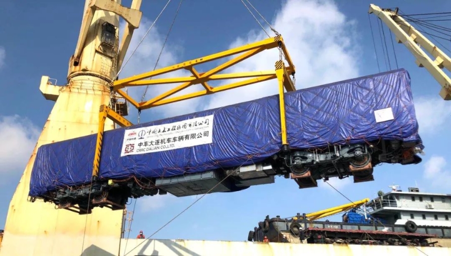 2020年2月18日,由中車大連機車車輛有限公司制造的兩列尼日利亞阿布賈內(nèi)燃動車組,在大連港裝船啟運。中新社發(fā) 邢毅 攝