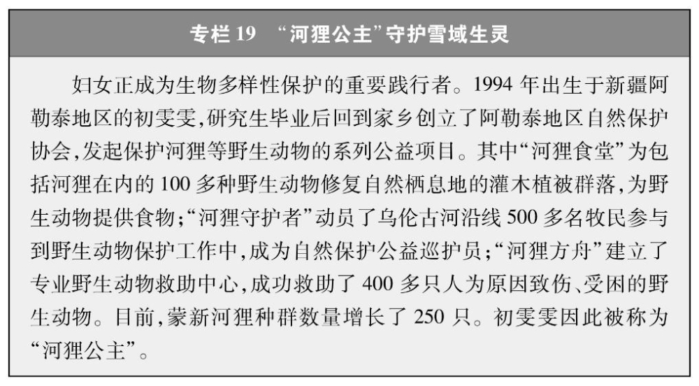 推動(dòng)生態(tài)系統(tǒng)保護(hù)修復(fù)。統(tǒng)籌推進(jìn)山水林田湖草沙一體化保護(hù)和系統(tǒng)治理,著力構(gòu)建從山頂?shù)胶Q蟮谋Wo(hù)治理大格局。廣大婦女積極投身生態(tài)系統(tǒng)保護(hù)修復(fù),在19.07萬(wàn)平方公里的三江源國(guó)家公園,有1.7萬(wàn)余名生態(tài)管護(hù)員日夜堅(jiān)守,其中婦女占33.3%;海南昌江黎族自治縣的“植樹(shù)娘子軍”,30余年持續(xù)摸索反復(fù)試驗(yàn),在荒漠中種出了3萬(wàn)多畝近600萬(wàn)株海防林;陜西女子民兵治沙連50多年治理了1.4萬(wàn)畝荒漠地區(qū),使昔日寸草不生、人跡罕至的荒漠變成了“林成網(wǎng)、樹(shù)成行”的大漠綠洲;寧夏賀蘭縣“紅馬甲”巾幗志愿服務(wù)隊(duì)常年開(kāi)展護(hù)河護(hù)灘護(hù)鳥(niǎo)行動(dòng);江蘇南京市持續(xù)開(kāi)展“長(zhǎng)江大保護(hù)”巾幗行動(dòng)。在增綠護(hù)林、防沙治沙、江河保護(hù)、生物多樣性保護(hù)等各方面都展現(xiàn)著婦女的堅(jiān)韌與智慧。