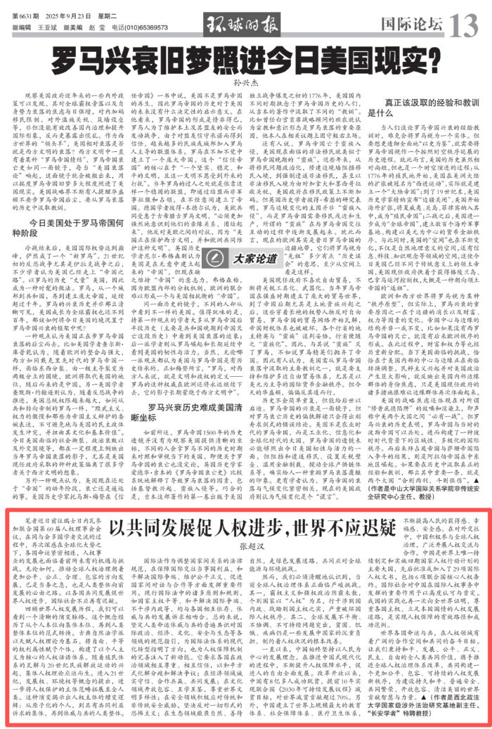 筆者近日前往瑞士日內(nèi)瓦參加聯(lián)合國(guó)第60屆人權(quán)理事會(huì)會(huì)議,在同與會(huì)多國(guó)學(xué)者交流的過(guò)程中,再次深感在全球化大勢(shì)之下,各國(guó)命運(yùn)緊密相連,人權(quán)事業(yè)的發(fā)展也面臨著前所未有的機(jī)遇與挑戰(zhàn)。無(wú)論如何,推動(dòng)全球人權(quán)治理朝著更加公平、公正、合理、包容的方向發(fā)展,已是當(dāng)務(wù)之急,也是人類整體向前發(fā)展的必由之路。以各國(guó)共同發(fā)展促世界人權(quán)進(jìn)步,國(guó)際社會(huì)不應(yīng)再有遲疑。
