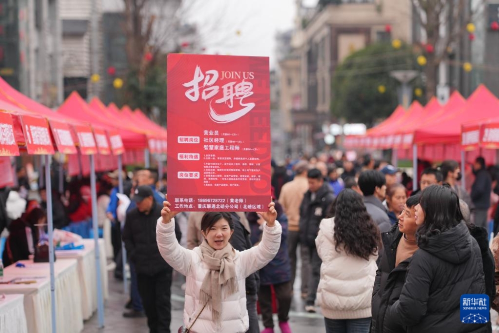 2025年2月13日,求職者在重慶市北碚區(qū)人力社保局舉行的2025年“春風行動”專場招聘會現(xiàn)場了解用工信息。“十四五”時期,我國每年城鎮(zhèn)新增就業(yè)1200萬人以上。新華社發(fā)(秦廷富 攝)