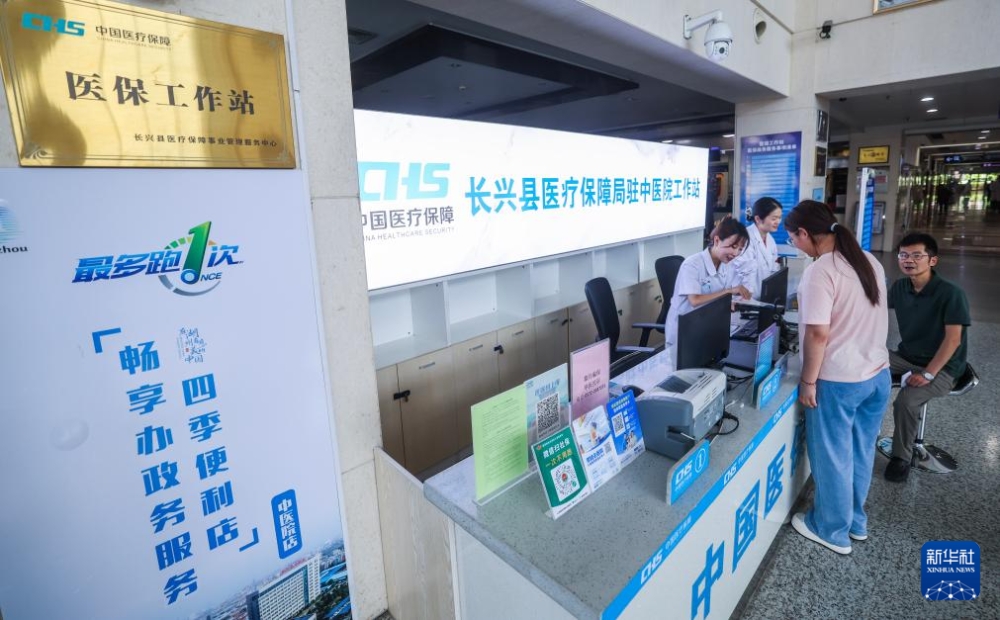 2025年7月3日,浙江省長興縣中醫(yī)院醫(yī)保工作站工作人員在給參保人員辦理門診費用報銷。“十四五”以來,醫(yī)保基金累計支出12.13萬億元,年均增速9.1%。新華社記者 徐昱 攝