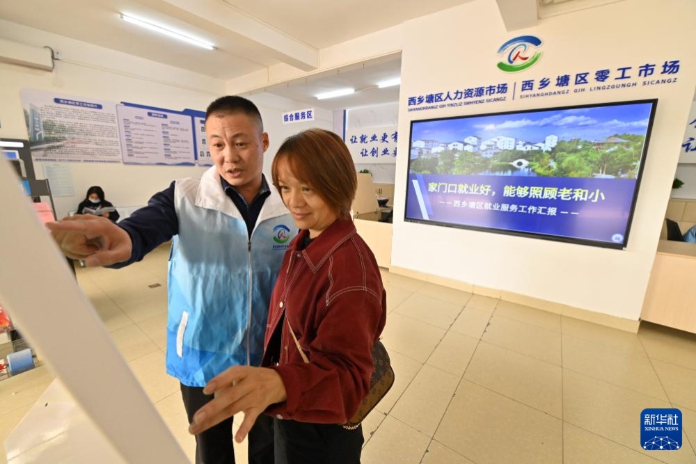 2025年12月10日,在廣西南寧市西鄉(xiāng)塘區(qū)零工市場,工作人員(左)指導市民查找就業(yè)招聘信息。“十四五”時期,我國每年城鎮(zhèn)新增就業(yè)1200萬人以上。新華社記者 陸波岸 攝
