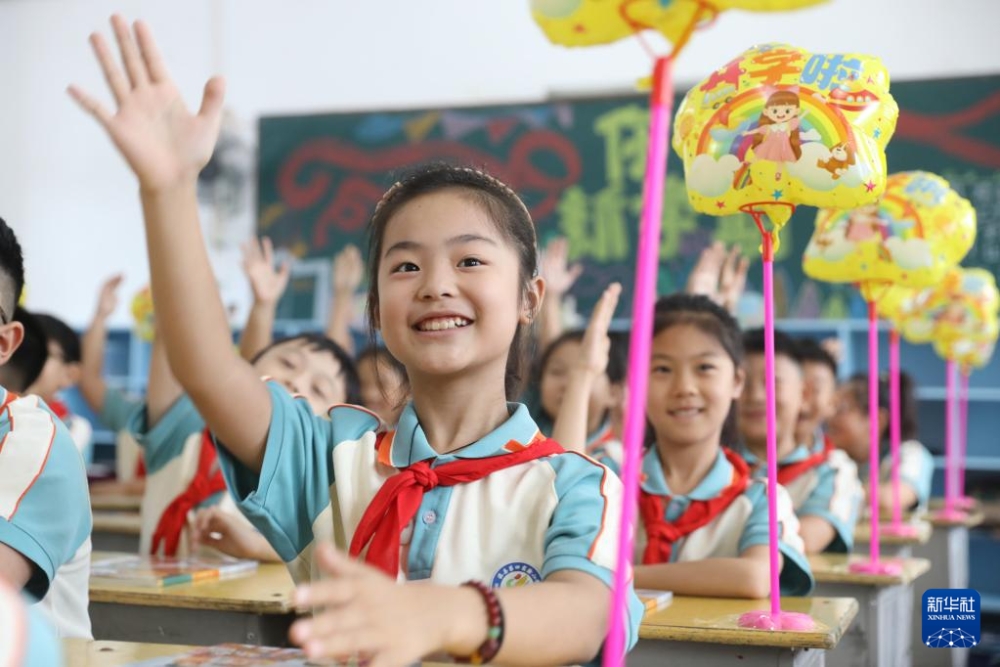 2024年9月2日,河南省焦作市溫縣第四實驗小學學生在課堂上舉手,準備分享自己的暑假趣事。 “十四五”時期,我國教育事業(yè)取得歷史性成就,義務教育全國2895個縣域?qū)崿F(xiàn)基本均衡。新華社發(fā)(徐宏星攝)
