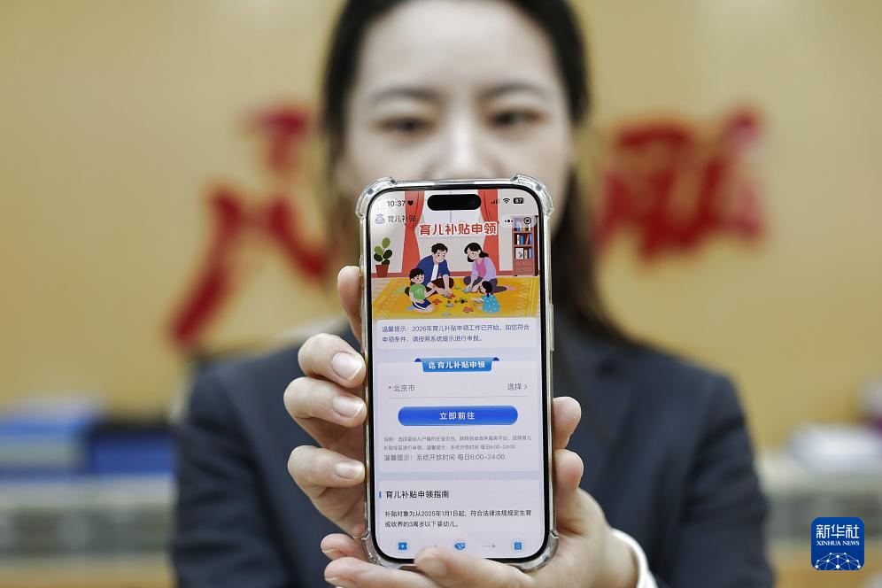 2026年1月5日,工作人員在北京市西城區(qū)月壇街道政務服務中心展示“育兒補貼”小程序。“十四五”時期,我國大力推進托育服務體系建設,出臺一攬子生育支持政策措施,推動建設生育友好型社會。新華社記者 張玉薇 攝