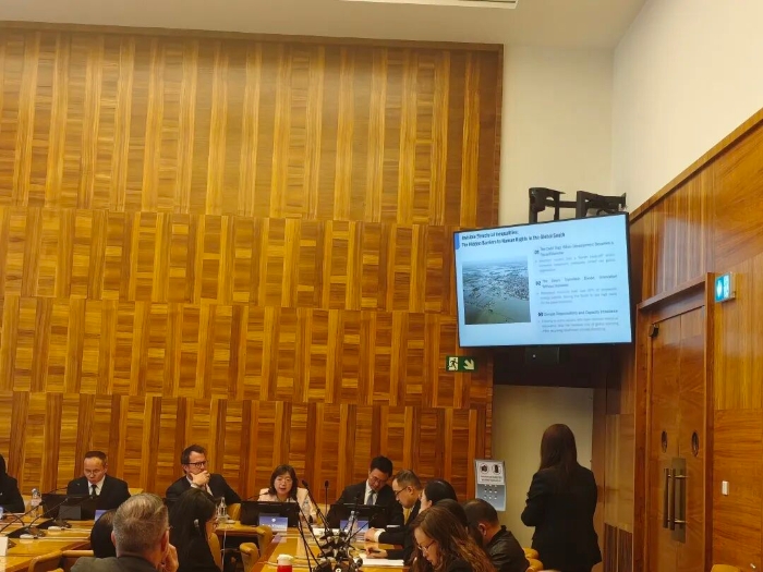 此外,唐穎俠還參加了由聯(lián)合國人權(quán)高專辦、環(huán)境與人權(quán)特別報告員、非政府組織等部門主辦的主題為“呼吸清潔空氣:保護公共健康和實現(xiàn)健康環(huán)境”邊會、“關(guān)于土著人對環(huán)境權(quán)的貢獻”邊會、“氣候正義與人權(quán)”邊會、“沖突、氣候變化和新殖民主義時代自然資源的主權(quán)與自決權(quán)”邊會、“公司治理中的人權(quán)因素:提高全球供應鏈中的人權(quán)盡責”邊會等多場在萬國宮內(nèi)邊會,以及在日內(nèi)瓦大學舉辦的“危機世界中全球南方視角下的地緣政治、人權(quán)與主權(quán)”場外邊會。旁聽了與反恐與人權(quán)特別報告員互動對話會、隱私權(quán)特別報告員互動對話會、武裝沖突中的兒童權(quán)利保護、大會一般性辯論等活動。本次出訪進一步加深了與聯(lián)合國人權(quán)機制之間的溝通交流和互信合作。