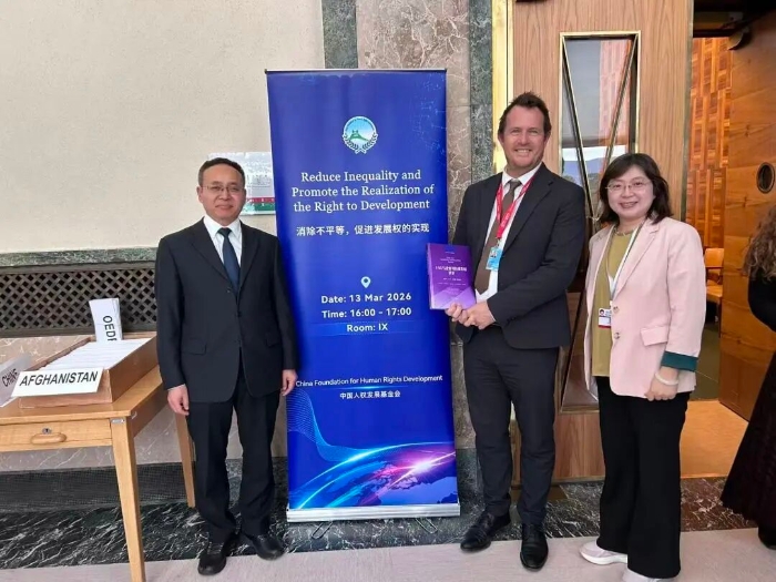 3月13日,唐穎俠在由中國人權(quán)發(fā)展基金會舉辦的“消除不平等,促進發(fā)展權(quán)的實現(xiàn)”主題邊會上發(fā)言。唐穎俠表示,當前全球南方面臨結(jié)構(gòu)性不平等挑戰(zhàn),制約了發(fā)展權(quán)和環(huán)境權(quán)的實現(xiàn),中國提出全球發(fā)展倡議、全球安全倡議、全球文明倡議和全球治理倡議,為推動更加公平、包容和可持續(xù)的人權(quán)治理格局提供了重要路徑。會議期間,唐穎俠與中外人士圍繞推動更加公平包容的發(fā)展、促進發(fā)展權(quán)實現(xiàn)等議題展開交流探討。