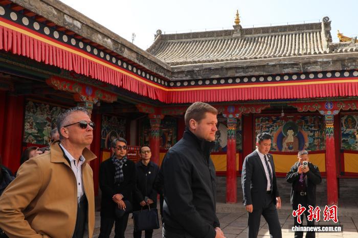 4月5日,青海西寧,奧地利中國友好協(xié)會高級代表團一行先后前往藏傳佛教圣地塔爾寺和青海省藏醫(yī)院感知青海藏文化。圖為代表團成員參觀塔爾寺。中新社記者 馬銘言 攝