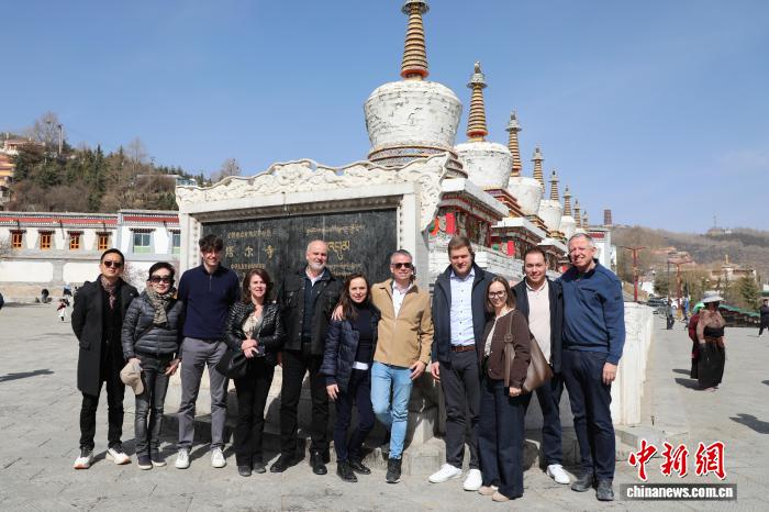 4月5日,青海西寧,奧地利中國友好協(xié)會高級代表團一行先后前往藏傳佛教圣地塔爾寺和青海省藏醫(yī)院感知青海藏文化。圖為代表團在塔爾寺合影。中新社記者 馬銘言 攝